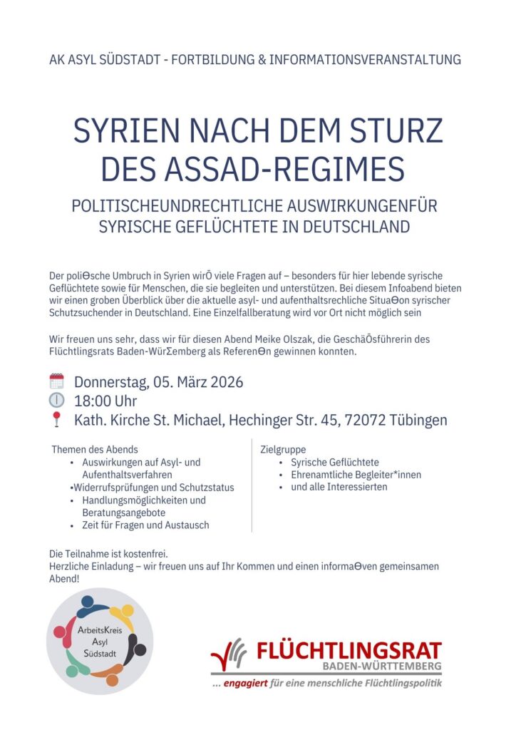 Besonders hinweisen möchte ich euch auf eine Veranstaltung, die wir vom AK Asyl Südstadt mitorganisieren: